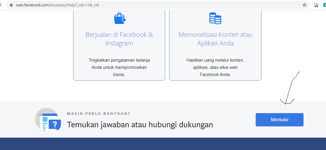 3. Selanjutnya akses halaman support center facebook, alamatnya https://www.facebook.com/business/help