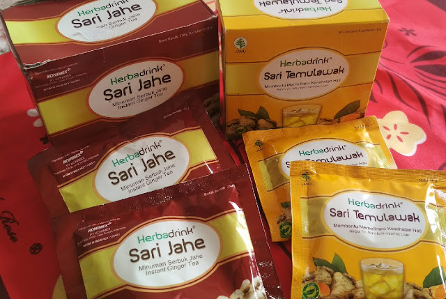 Biasanya dalam kondisi seperti ini setelah di urut saya suka minum yang hangat-hangat. Lalu teringat kemarin saat menemani Ubay beli susu, saya juga membeli Herbadrink Sari Jahe dan Herbadrink Temulawak.