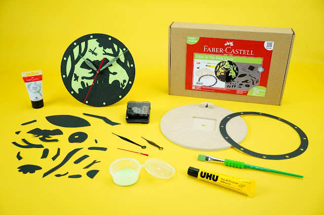 Kebetulan kami mencoba produk Glow in the Dark Clock yang merupakan produk berisi bagian-bagian pembuatan jam yang bisa menyala saat gelap.