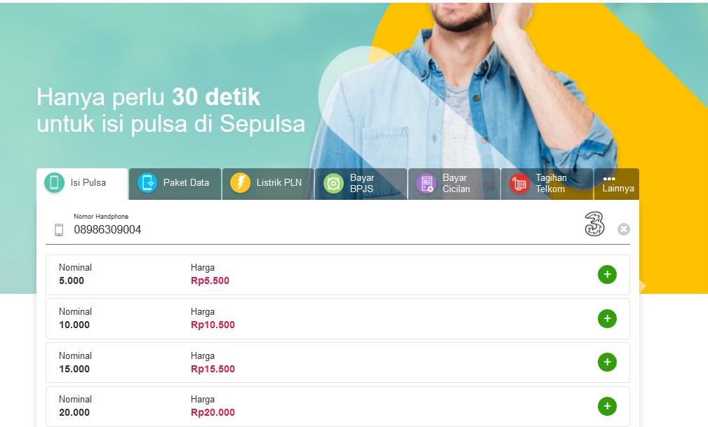 Mau tau kan cara isi pulsa yang murah dan punya banyak untung serta diskon? Kita cukup mengisi pulsa di Sepulsa.com. Selain melayani penjualan pulsa, Sepulsa juga melayani berbagai macam pembayaran seperti pembayaran BPJS, Pembayaran PLN, cicilan, tagihan telkom, dan PDAM semua dengan proses yang sangat mudah, cepat, dan customer service yang aktif 24 jam. Mengisi pulsa melalui Sepulsa kita bisa mendapatkan harga lebih murah dan berbagai diskon di situs eCommerce di Indonesia.